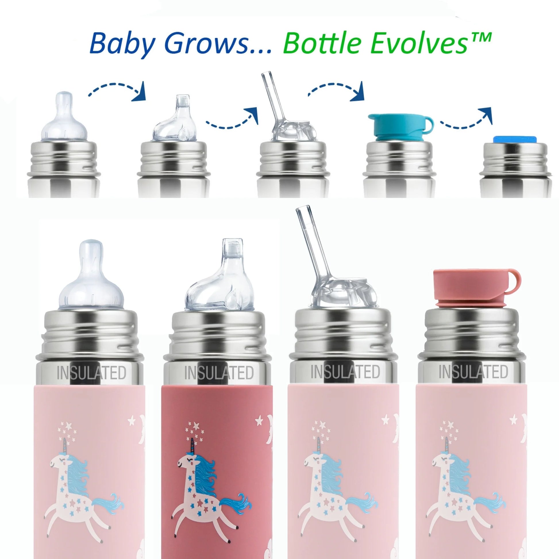 Bytt ut toppen og bruk flasken som tåteflaske, sugerørsflaske eller sportsflaske etter hvert som barnet vokser.
