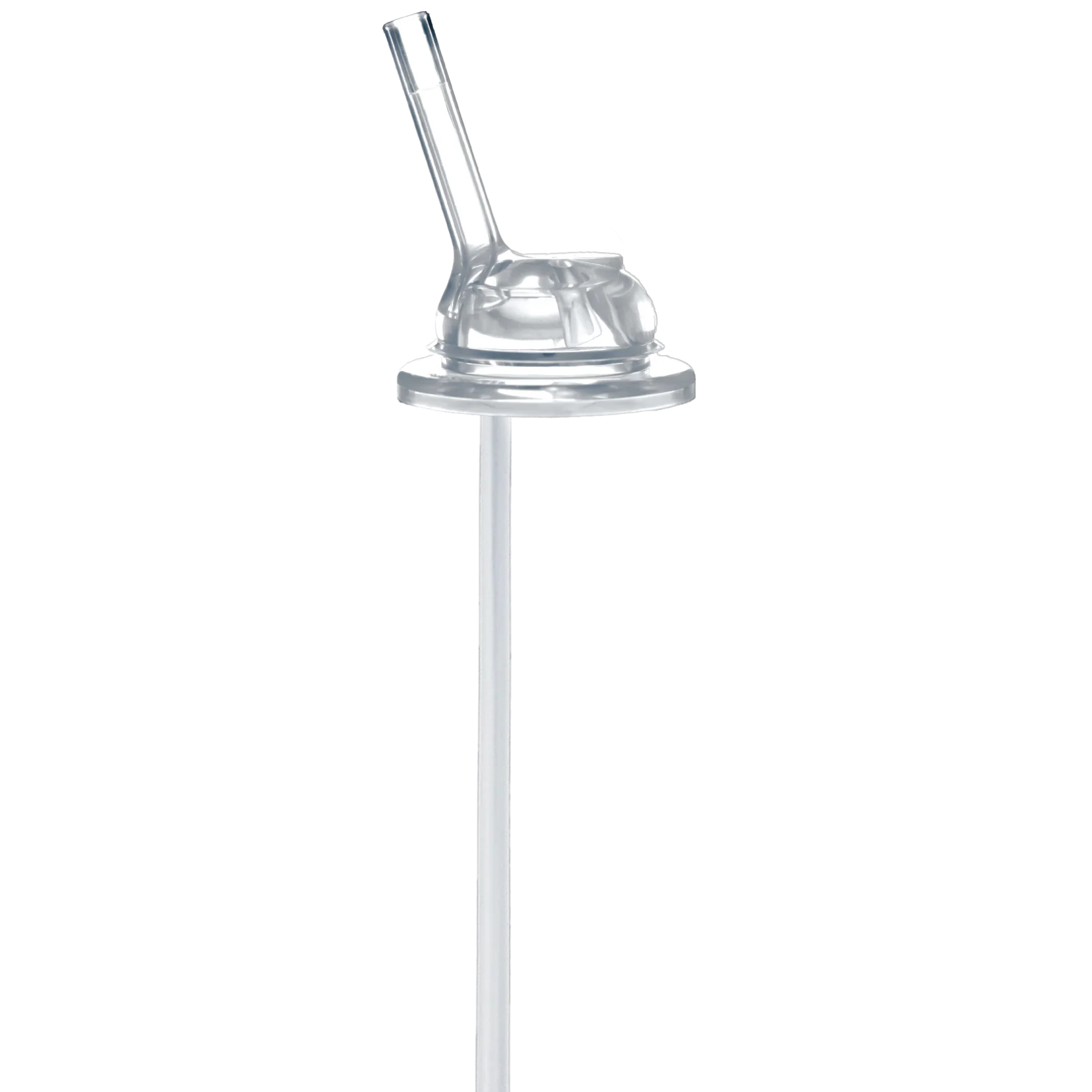 - Den består av to deler – et munnstykke og et rett sugerør som går inn i flasken. Dette lar barn drikke oppreist (med det rette sugerøret festet) eller tippe flasken (med det rette sugerøret fjernet)