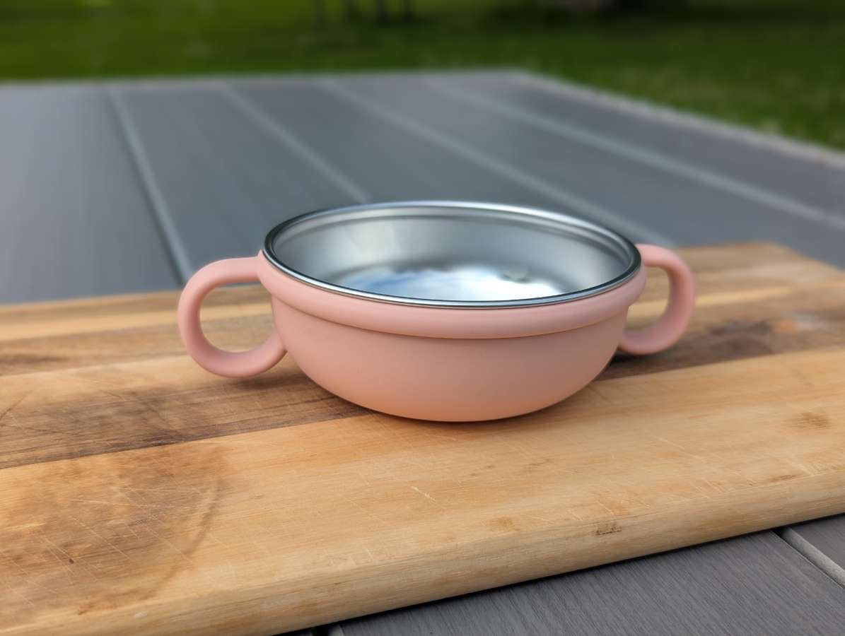 Perfekt å holde i for å mate barnet! Tåler oppvaskmaskin, varm og kald mat, men stål kan ikke i mikrobølgeovn.